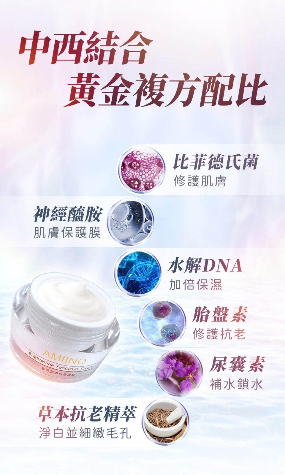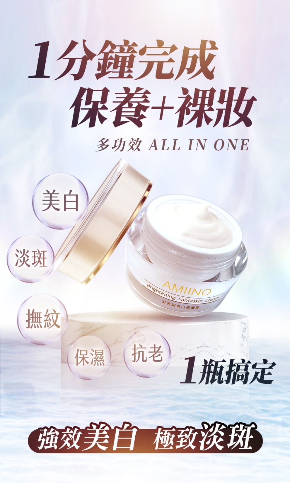 7分鐘前【安美諾 美白修護霜】 一瓶多效 美白淡斑修護保濕緊緻毛孔延緩肌膚老化 經過人體實驗,醫學機構證實,5週有感! - 美白修護霜1入 送珍珠潤澤面膜 1片