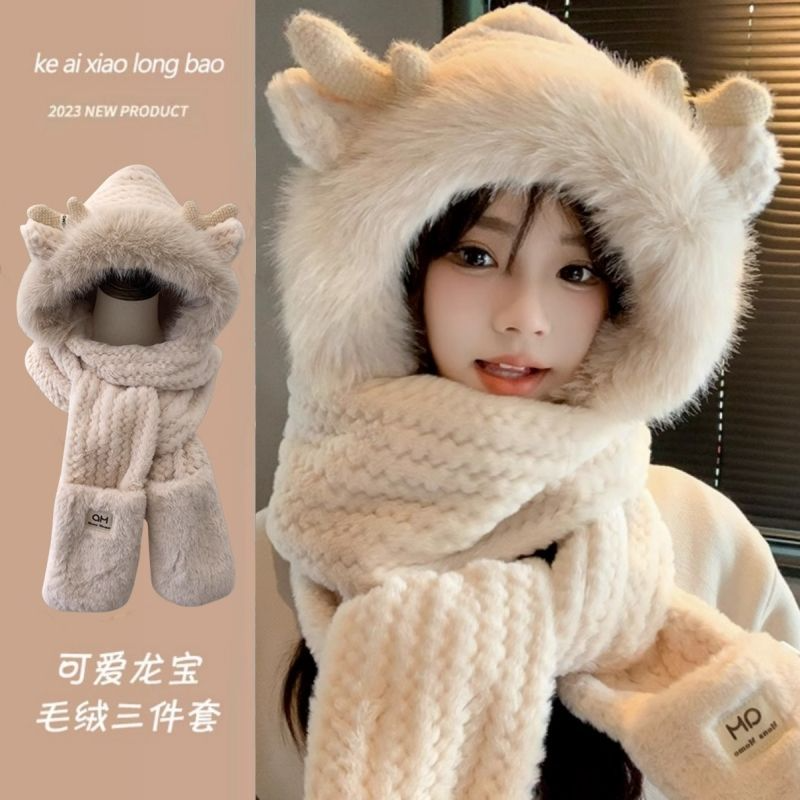 20分鐘前【熱銷免運】新款可愛帽子圍巾一體女冬季連帽圍脖加厚保暖毛絨三件套騎車 毛線帽 針織帽 毛帽 小熊造型 可愛毛帽 - 【今日限定】體驗一入組$799
